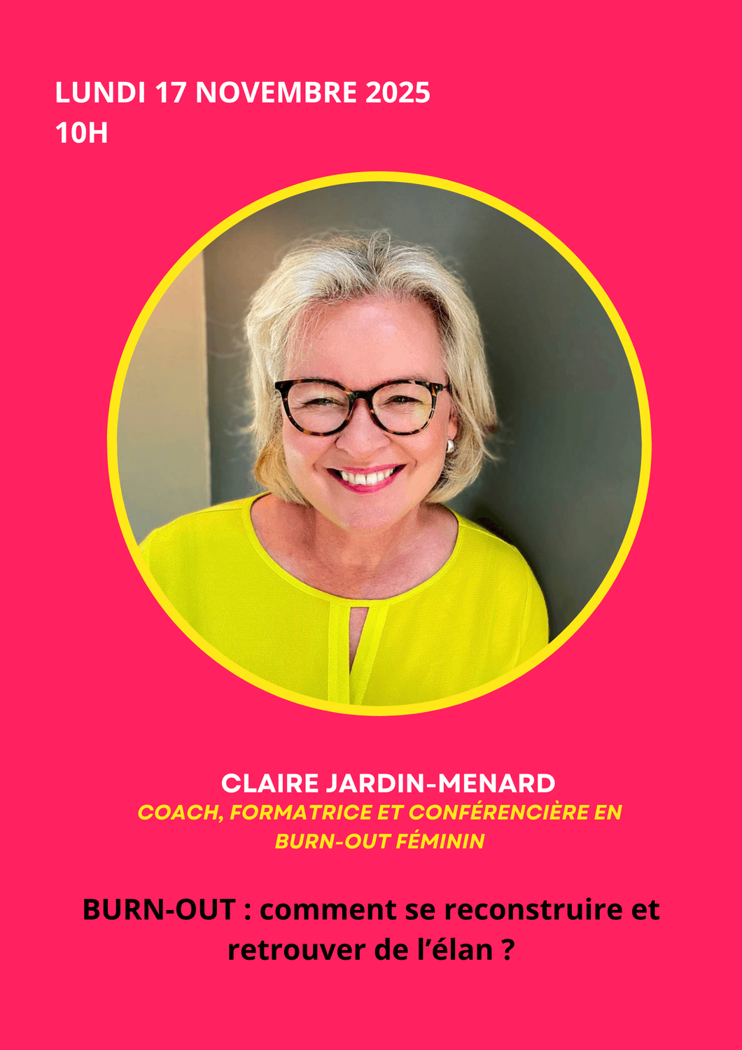 Je suis Claire Jardin-Ménard, coach, formatrice et conférencière en Burn-Out féminin.